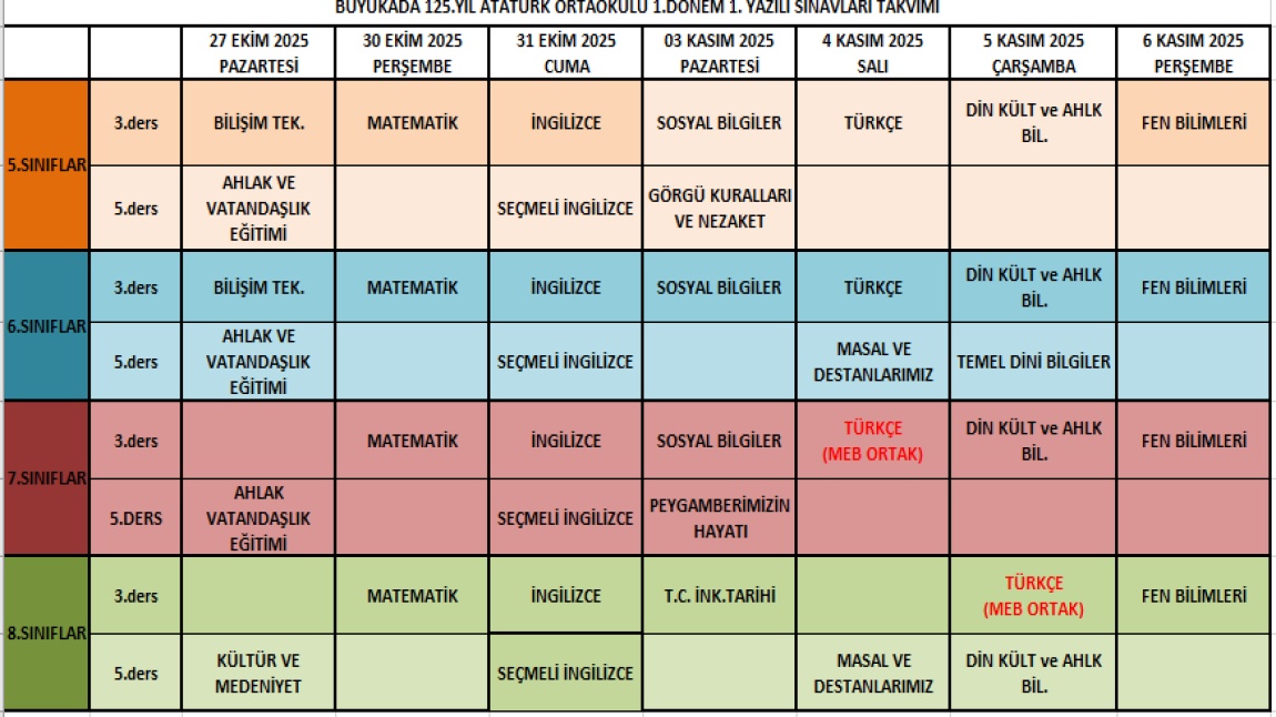 2025-2026 Eğitim Öğretim Yılı 1. Dönem Ortak Yazılı Sınav Tarihleri